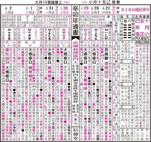 (2011年歲次辛卯100年) 農曆十月初一日~十一月廿九日國曆100年10月27日~11月24查詢
