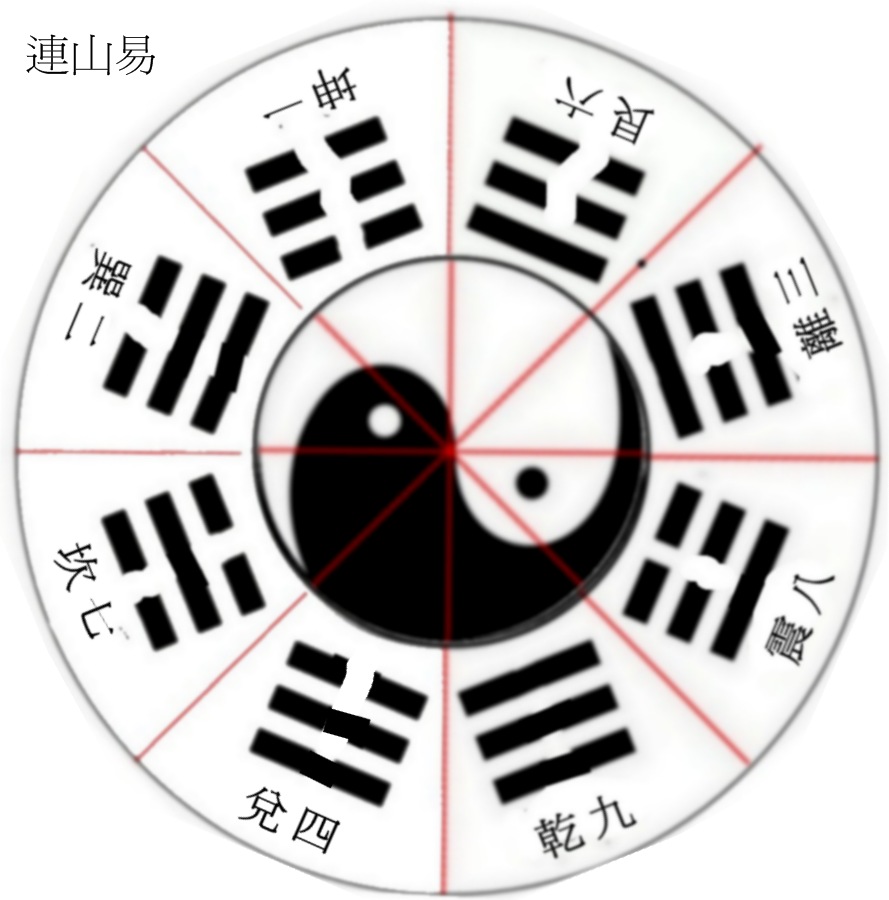 連山卦可由歸藏交艮6或周易交兌4得來,甚至六十四卦也可一卦一卦交變而成.