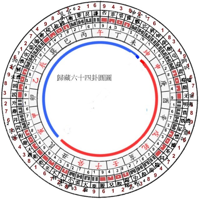 [font=細明體]2. [/font][font=新細明體]六十四卦每一卦本身就含有數序在[/font][font=細明體],[/font][font=新細明體]依照[/font][font=細明體]12346789[/font][font=新細明體]順序排列[/font][font=細明體]([/font][font=新細明體]化成[/font][font=細明體]94382761),[/font][font=新細明體]不能隨意調動位置[/font][font=細明體],[/font][font=新細明體]寶圖中兌宮[/font][font=細明體]11,10,13,12,16,15,18,17(21437698),[/font][font=新細明體]離宮[/font][font=細明體]21,22,19,20,26,27,24,25(34128927)[/font][font=新細明體]震宮[/font][font=細明體]31,30,29,28,36,35,34,33(83491672),[/font][font=新細明體]以上逆[/font][font=細明體],[/font][font=新細明體]巽宮[/font][font=細明體]40,39,38,37,45,44,43,42(43219876)[/font][font=新細明體]坎宮[/font][font=細明體]48,49,46,47,53,54,51,52(34128967)[/font][font=新細明體]艮宮[/font][font=細明體]56,55,58,57,61,60,63,62(21437698)[/font][font=新細明體]以上順[/font][font=細明體],[/font][font=新細明體]運算上每宮用九數虛五不用[/font][font=細明體],64[/font][font=新細明體]卦配[/font][font=細明體]72[/font][font=新細明體]數[/font][font=細明體].[/font]