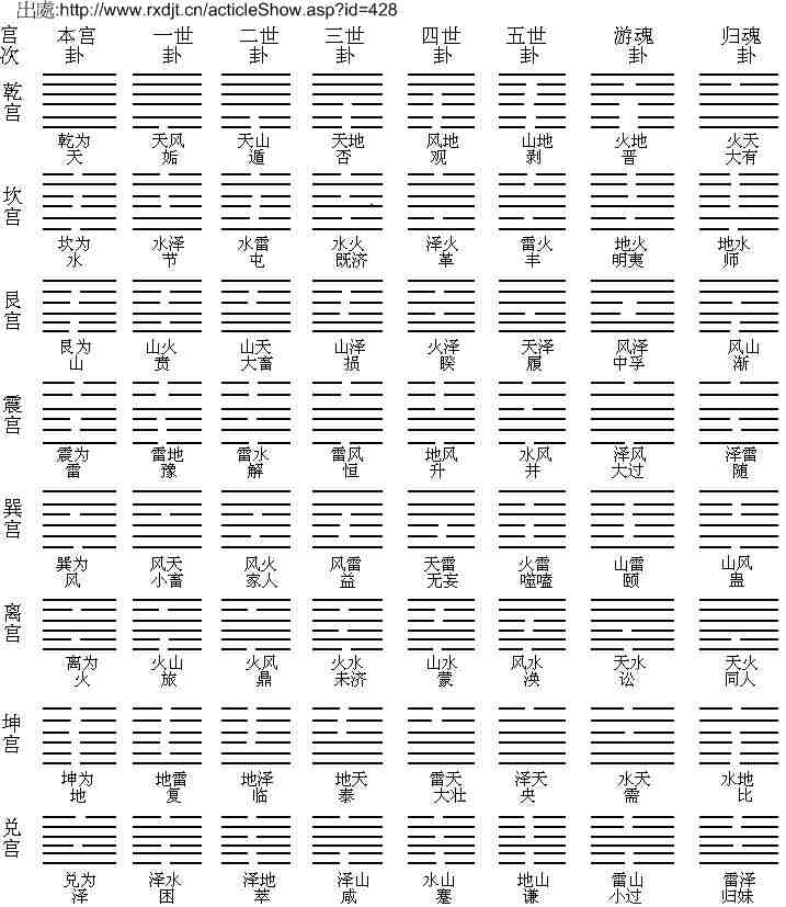陽卦: 乾、姤、遯、否、巽、小畜、家人、益、艮、賁、大畜、損、坤、復、臨、泰、震、豫、解、恆、兌、困、萃、咸、坎、節、屯、既濟、離、旅、鼎、未濟;