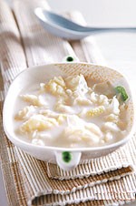 作法:銀耳和百合洗淨備用。將700c.c.水煮滾後加銀耳、百合,煮滾後轉小火煮約30分鐘,加入杏仁粉攪勻後即可關火。