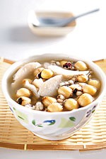 材料:蓮子、淮山、芡實各20克、薏仁40克。