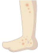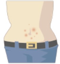腰部褲緣上方或手臂,形成外圍紅暈中央小紅點時,應考慮是否為跳蚤叮咬,有可能坐或躺的時候被叮,要注意沙發或床上有跳蚤存在。先止癢