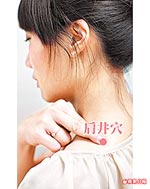 方式:先以右手食指壓於中指指背上,按揉左肩井穴10秒,休息5秒,再以左手食指按壓中指指背上,按揉右肩井穴,左右手各按壓5分鐘,每日早晚各1次。