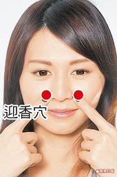 按法:以食指輕輕壓,每天早中晚各按1次,每次約5分鐘;另可將雙手掌心搓熱後,從鼻翼往上輕輕搓揉到兩眉中間的鼻樑。