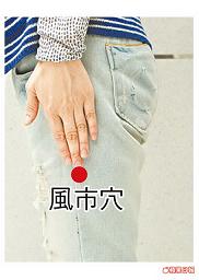 以手指指腹按壓穴位,每按5秒停1秒,共按約1分鐘。風市穴