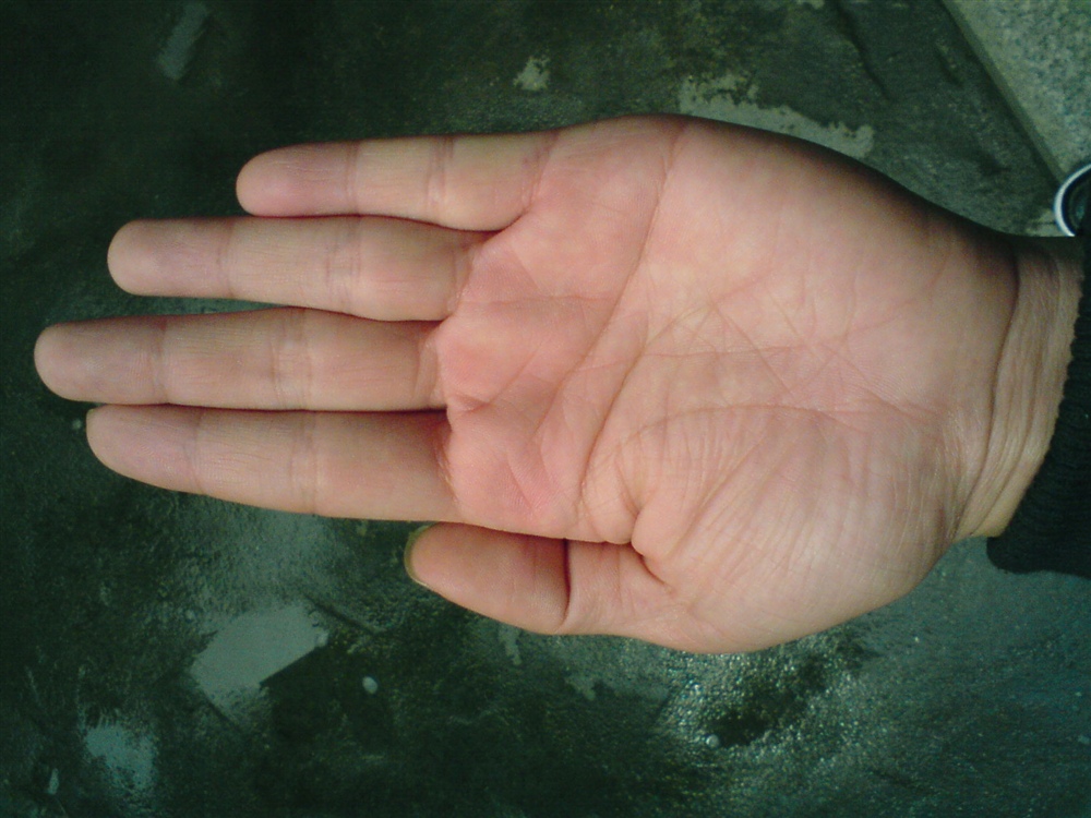 [size=13px]其實那條線的旁邊還有個向上的分叉,剛好與手的紋路重疊~~也有的說我怕老婆~現在又跟老婆吵~:pig4: 俺還是不要結婚算了~~[/size] -
