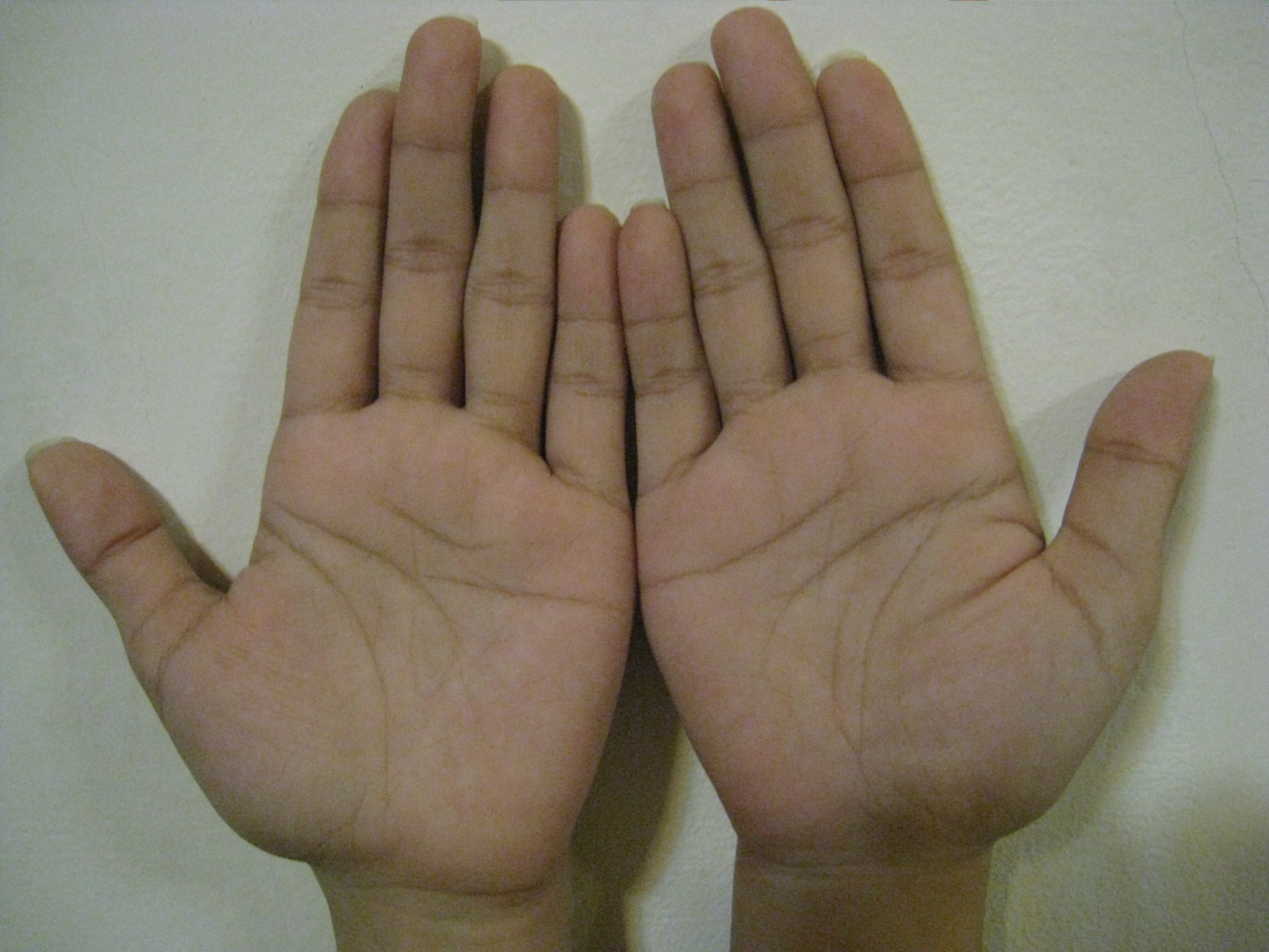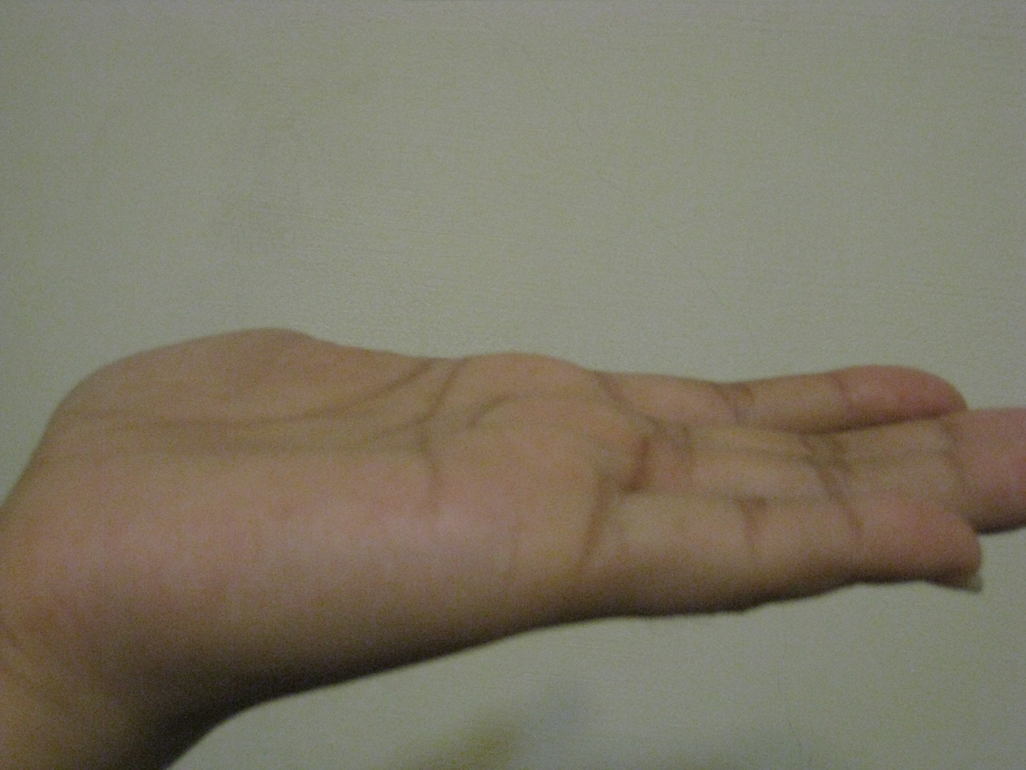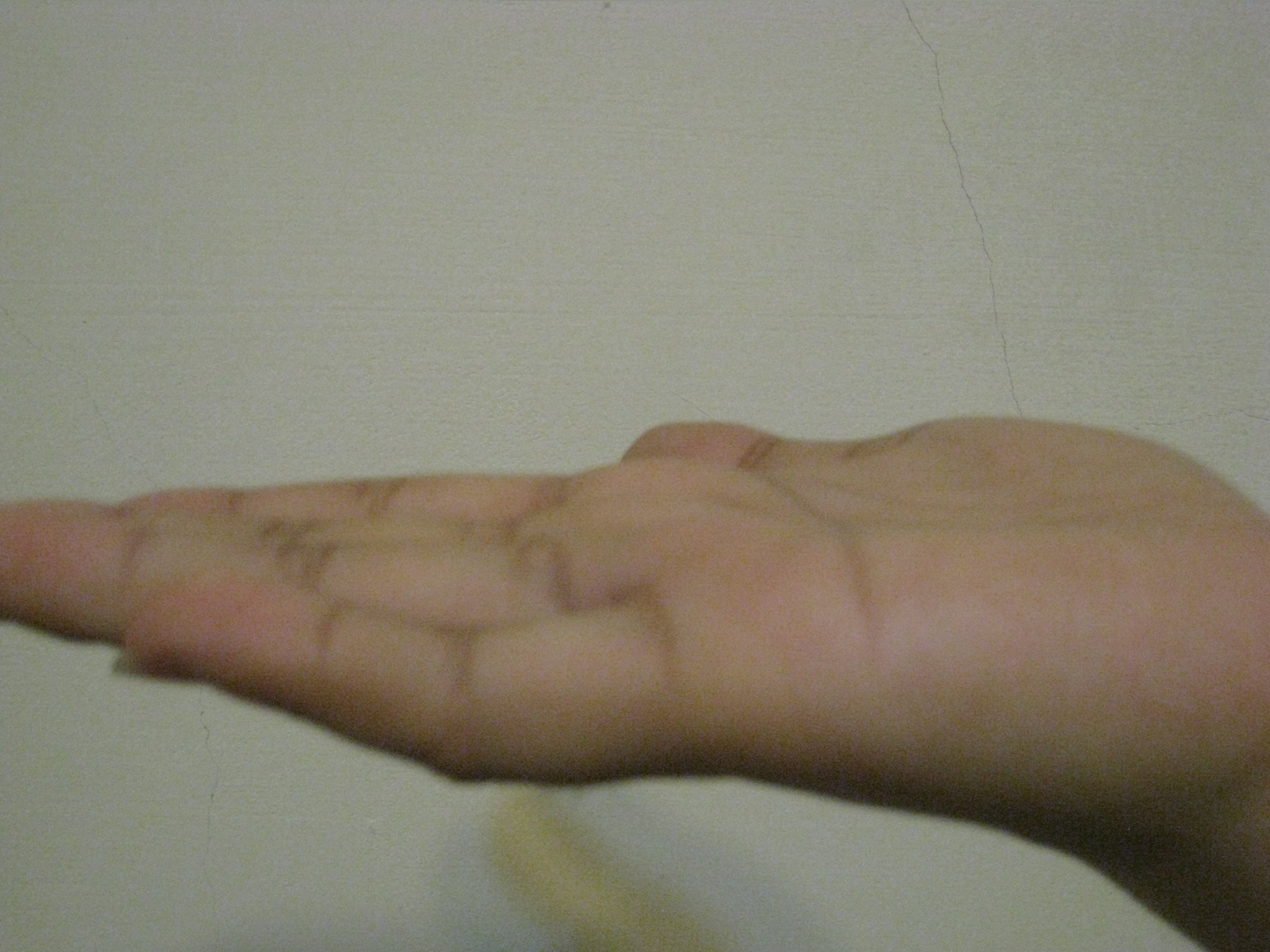 感情線也差很多唷…左手的感情線短且下斜(並與理智線重疊)實屬不好.但右手的相理得到改善(清晰且分明)