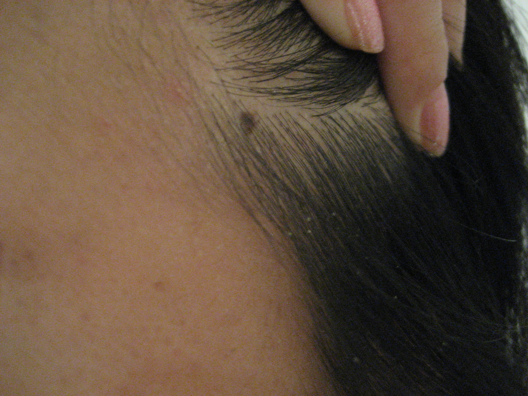 关于我左眼眼皮上的疤痕近照,还有头发里有一颗好大的棕色痣不知道是好是坏,因为想这么大的,我身上也仅此一颗啦。
