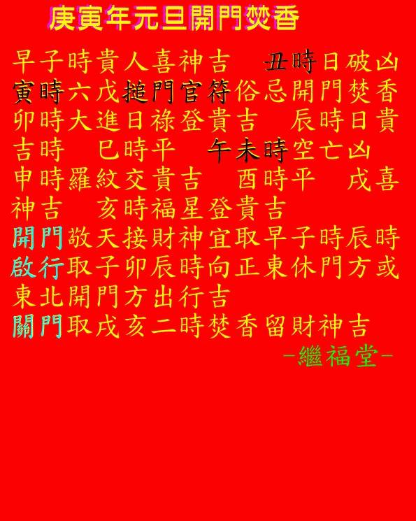 元旦開門焚香 啟行 關門 諸用事事民俗 既使當日是凶日 平常諸事不宜