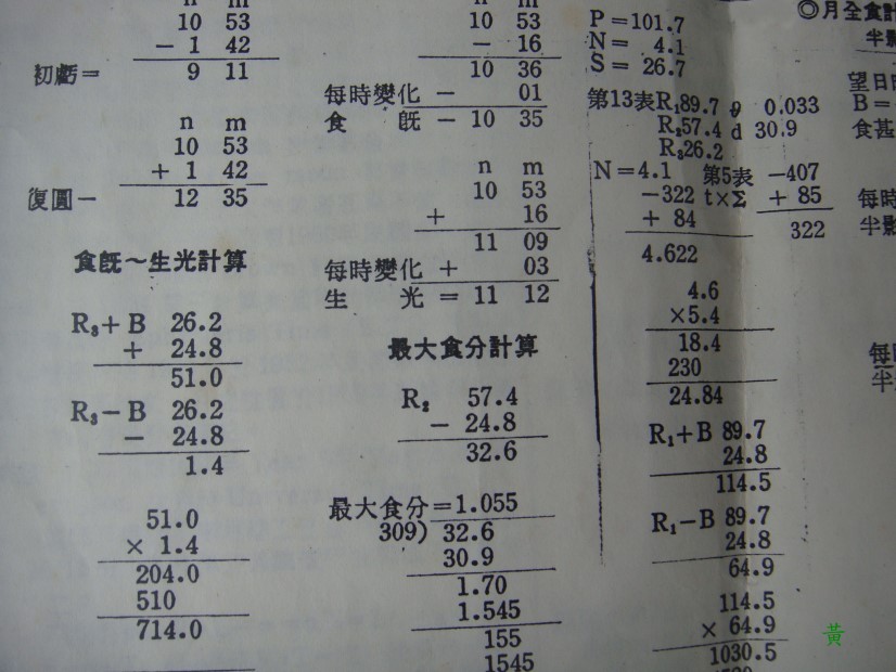 術數社交學習平台›討論區›擇吉›月全食計算 擇吉 月全食計算 Posted by 台灣繼福堂 on 1 7 月, 2010 在 12:36 下午 部份計算法例 源自黃學劼大師 日月食1.jpg 台灣繼福堂 replied 15 年, 3 月 前 1 Member · 3 Replies 3 Replies 台灣繼福堂 會員 1 7 月, 2010 在 12:38 下午 部份計算法例 源自黃學劼大師 日月食2.jpg 台灣繼福堂 會員 3 7 月, 2010 在 8:09 上午 若用傳統套表老法 如月出帶食及月沒帶食 有時會有誤差 看不出某地區否能見 食1.jpg 台灣繼福堂 會員 3 7 月, 2010 在 8:10 上午 能見地區: 澳洲:霍巴特,朗塞斯頓 紐西蘭:達尼丁,因弗卡 吉爾,哇馬魯,蒂馬魯。 南非:開普敦,伊麗莎白港。 食始:12時23分 食甚:14時20分 食終:16時17分 食象為中原時間 各地區宜+-當地時差 2011年11月25日陰曆十一月初一甲申 日偏食圖 2011.11.25.jpg Log In to Reply Log in to reply. 公開 所有成員 我的好友 僅限自己 公開所有成員我的好友僅限自己 公開 所有成員 我的好友 僅限自己 Log In to Reply Start of Discussion 0 of 0 replies June 2018 Now