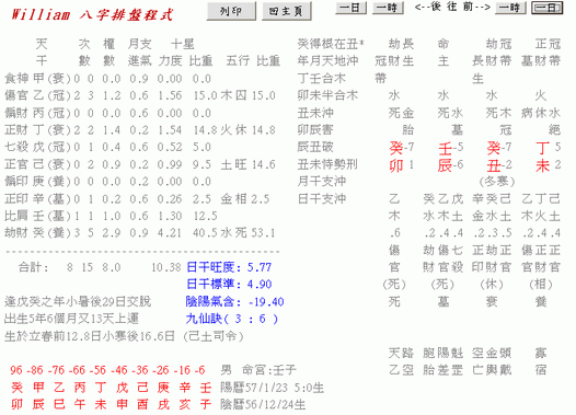 八字: 時 日 月 年 大運:6 ~ 15壬子