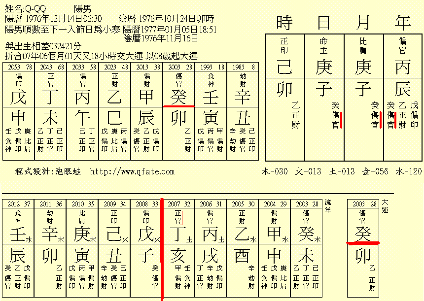 此人2007年流年为"正官",是"金水伤官喜见官"吗?大家猜猜发生了什么事情? -