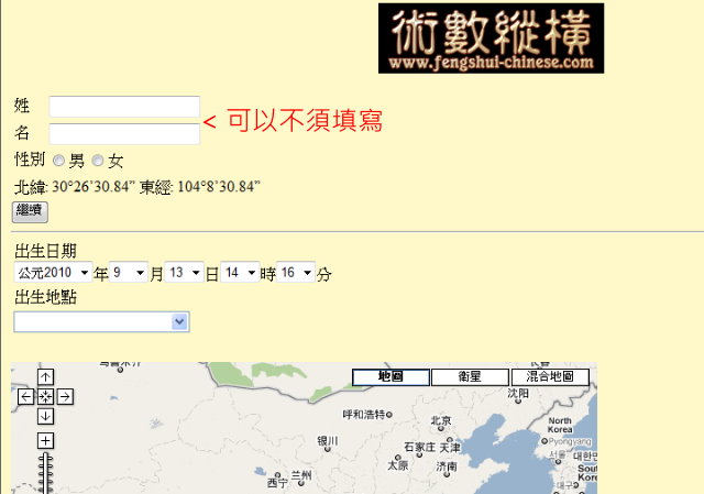 [size=13px]1.點擊排盤程式 http://dragon.fengshui-chinese.com/eightwords/?p=input_data[/size]