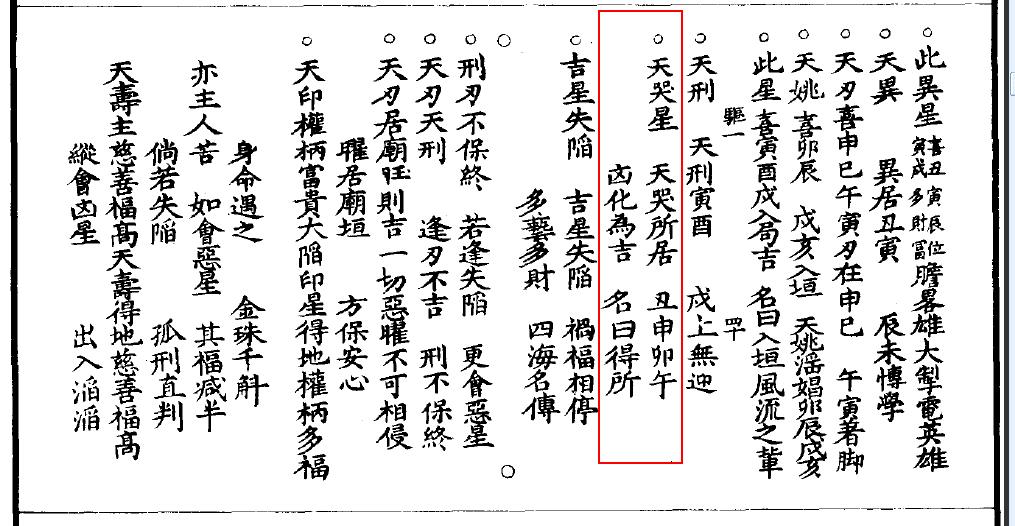 天刑入廟不為凶,操得兵權變是龍,天刃巳宮變化榮,神武功中領萬兵,