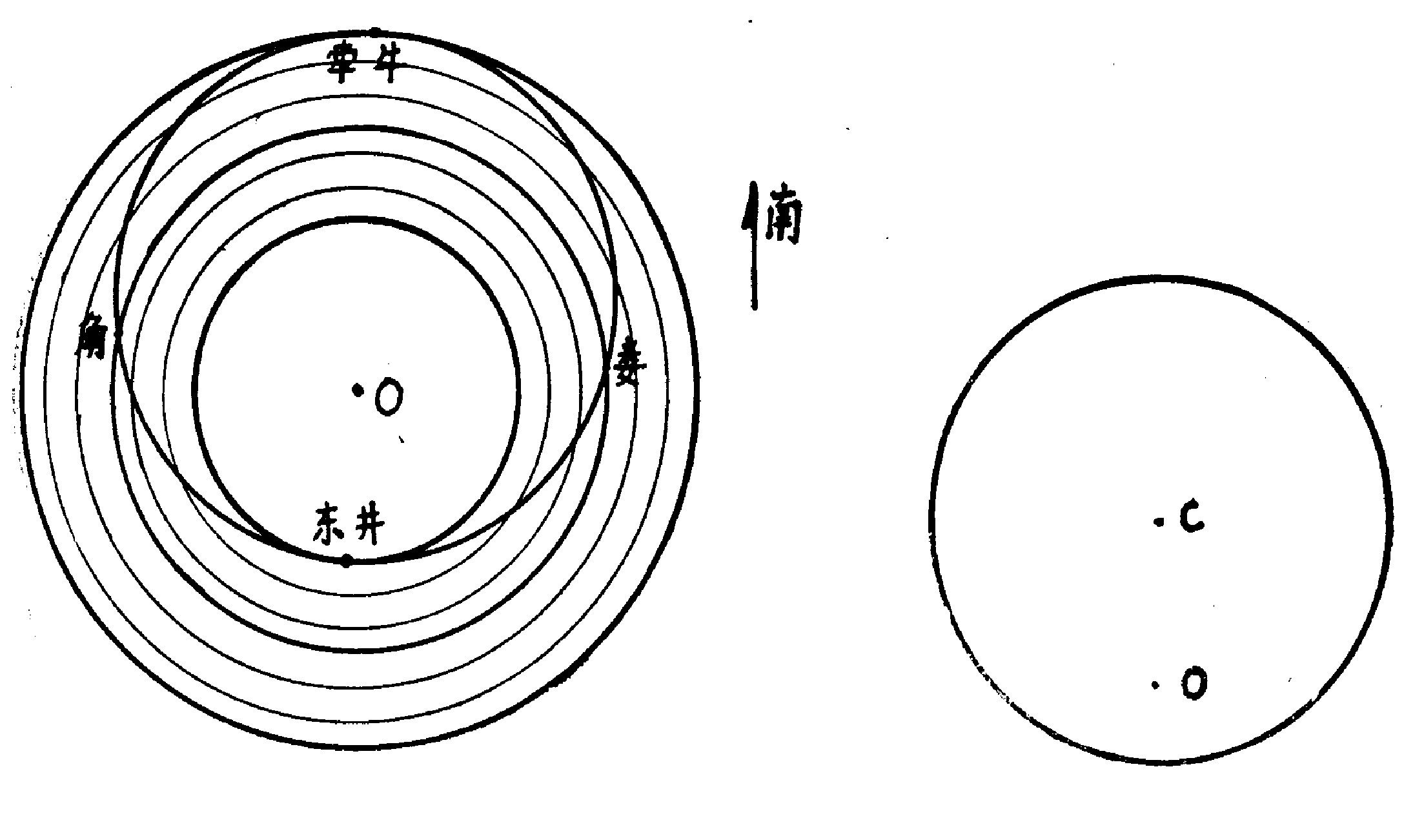 1.七衡圖之一:左圖夏至日中,冬至夜半;右圖冬至日中,夏至夜半。