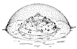 揚雄八難中的其他幾難,其實不能作為真正的駁難。這幾個駁難是指責《周髀算經》的蓋圖繪製時投影不準確。因為蓋天說中“天的形體”是圓拱形的,而蓋圖以平面來表示,必然發生投影問題。平心而論,這種責難就近乎無賴了——因為在幾千年前相信人類還很難在絹帛上畫出準確的立體投影平面圖形,尤其是當這個蓋圖包括著繁複的立體圖形疊加的時候!其實只要把蓋\圖做成立體圓拱形的,揚雄這幾個駁難就不攻自破了。而這種立體蓋圖的實踐早在距今6000-5000年左右紅山文化牛河梁遺址已經作了:牛河梁紅山文化積石塚三層圓丘和三層方丘(見下圖,圖中靠上居中者為圓丘,最上者為方丘);經過測量表明,上述遺址的圓壇的尺寸是一個很好的蓋圖,其合理程度更優於按照《周髀算經》提供的資料復原的蓋圖。