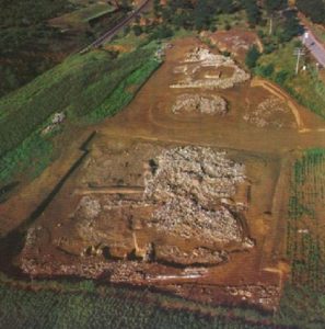 這種看法有考古實物支持:河南杞縣鹿台崗龍山文化遺址出土了正方形裏有一個內接圓的房屋基址,此基址高出建成時地面約一米,是一處內牆呈圓形外牆呈方形的特殊建築,內牆直徑4.7米,西、南各設一門道,室內有正南北、正東西方位的“十”字形通道貫穿內室延伸出外室,與房內地面土質迥然不同。內外圓形和方形房址之間狹小不可能有其他實際用途。從這個房屋基址的形制看,它就是立杆測影的地平式日晷盤;再從實際尺寸計算,可以判斷出這外方內圓的建築應是象徵天地,圓室內巨大十字則是象徵太陽。這是古人用於立杆測影的天文臺基址。