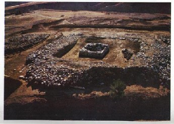 從這個發掘實物出發,也就可以順利解釋紅山文化遺址方圓兩壇大小問題:方壇象地、圓壇象天,按照蓋天說,明明是天包裹著地,那為什麼方壇比圓壇大?(見後紅山文化牛河梁遺址圖片)因為方、圓兩壇實際上套在一起就是一個立表測影的晷影盤基址,方中套圓,當然方壇大。通過實地測量紅山文化方壇與圓壇的尺寸,也確實表明圓壇是方壇的內接圓——圓壇直徑等於方壇邊長。