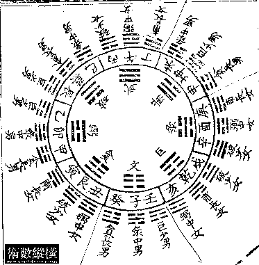 《玄空法鑑》內層天卦乃指先天方位八卦, 而外層地卦乃指二十四山所變出的二十四個卦, 所謂先後天之用.