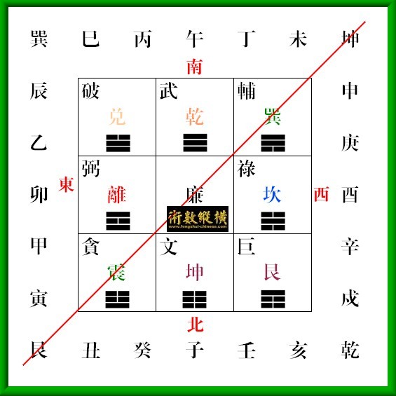 訣云”父母之義,父母居於兩頭, 男女夾在中間, 八方無一位不對待,無一位不交媾”,乾與坤對待,震與巽對待, 離與坎對待, 艮與兌對待.