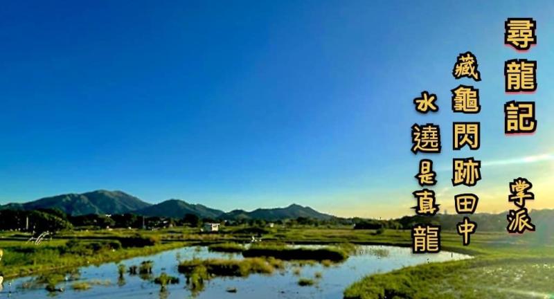 「大龍踴躍,落下平原濶板,十餘里,百餘畝,脈如火角,如玉階,如蛛絲,如梅花,如走珠,復隱無踪,條條而田心踴突。如龜藏泥中。四圍低平,彼獨隆高,遠山高護,近水曲纏,此陽極而陰生也。