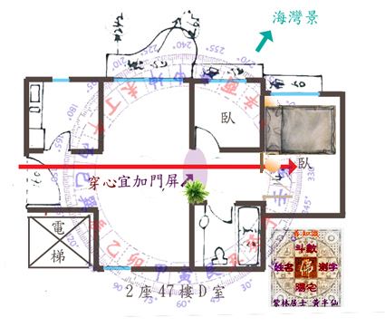 world兄…小弟睇盤時..其實睇到全屋大部份是亥山已向…但因門口有電梯及雪櫃影響…特別是雪櫃….當小弟避開這些大磁場的東西後…先可度出正確度數…唯獨由客廳開始…有小小兼壬山丙向….可能學仙巳 …