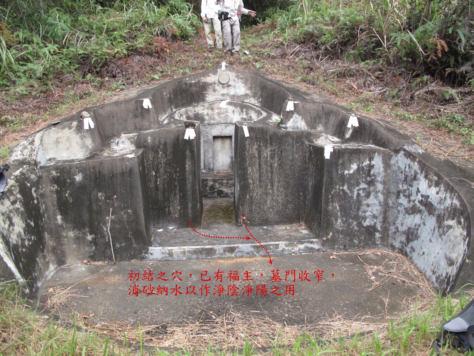[size=14pt]此地共結兩穴,一為初結,已有福主[/size],地師不詳,見附件相片。造葬墓門收窄,估計用以消砂納水,以作淨陰淨陽之用。惜後人雖有拜祭,但未知修剪墓前樹木之利害,以至外堂遭樹木所遮掩,不見外陽,碑向實無法收消砂納水之功,實為可惜,否則必兄弟同科,富貴有准。 -