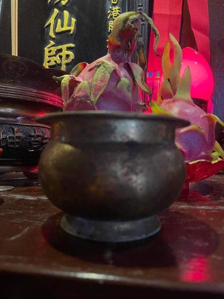 於是一天晚上,在窗台放上一個小小銅香爐「見圖」装上清香一柱。