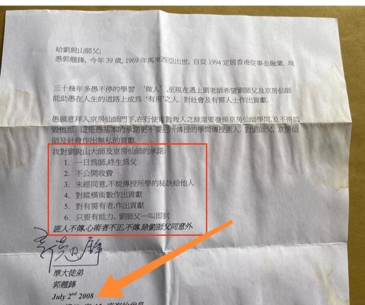 於是我隨便說提很高一入门條件,想另他知難而退!一须拜有儀式,二须要拜師書帖,三须要六位數字拜師金。