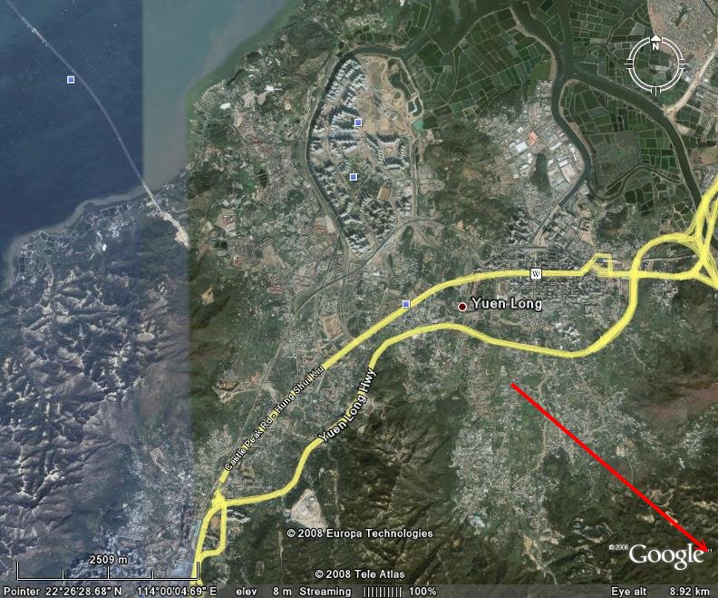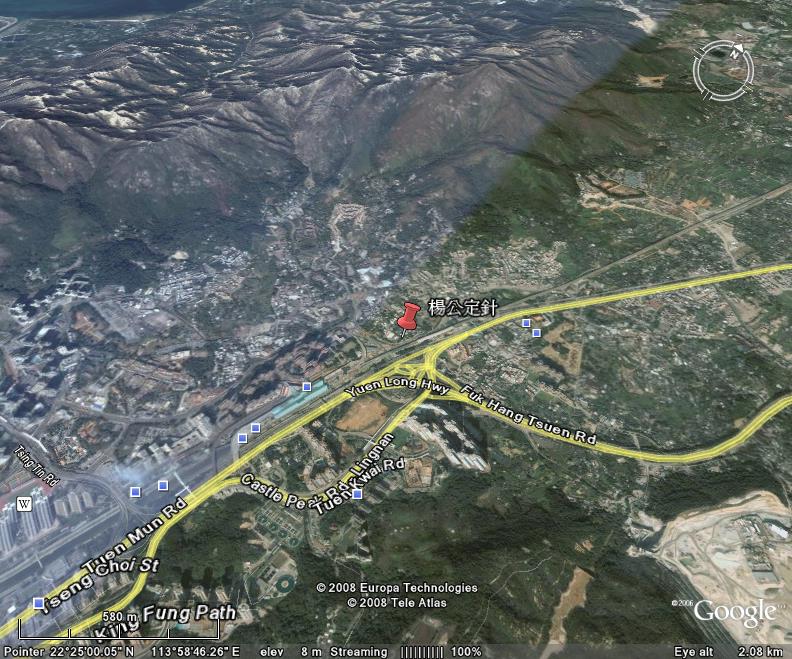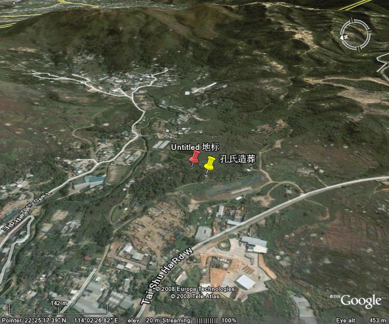 [font=標楷體]借來紫嘉兄圖片一用,從紫嘉兄圖片角度,若未到過這地方,很難察覺到原來大頭山抽出一脈急跌下起一小星頂束咽,這是典型束咽例子,短而窄,而李氏廿一世祖正正就在星頂下造穴,如果我們在正面角度看是察覺不到,這墓穴有如香港島南區獨立屋一樣,想多建一間也沒可能,因為它剪裁適度,可算是獨一無二.[/font]