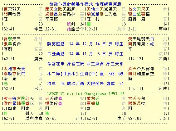 ——————紫微斗數命盤製作程式 命理網專用版——————