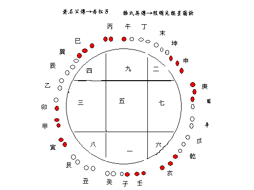 上、紅星用順佈、黑星用逆佈如一白運、則乾位值坤、即巨門二紅星、戍即巨門二黑星、用乾則二